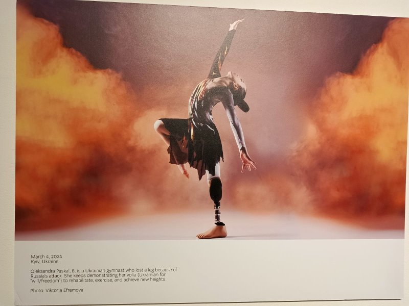 Foto ini adalah foto yang diambil Viktoria Efremova pada 4 Maret 2024 yang memotret Oleksandra Paskal yang saat itu berusia 8 tahun , seorang pesenam Ukraina yang kehilangan salah satu kakinya dalam sebuah serangan udara Rusia.